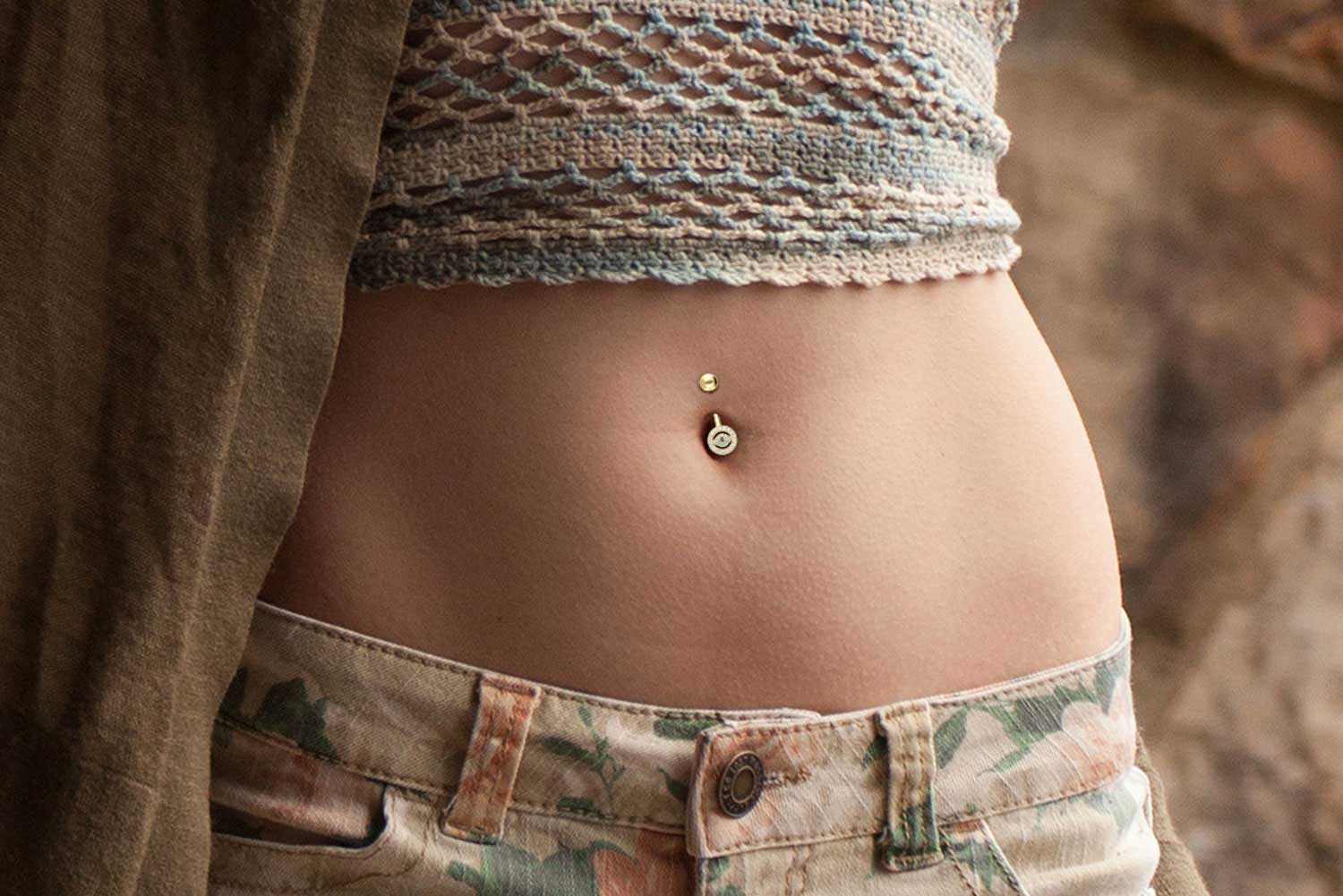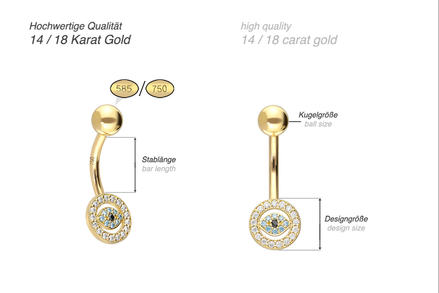14/18 Carat Gold - Belly Button Piercing Moissanite Eye
