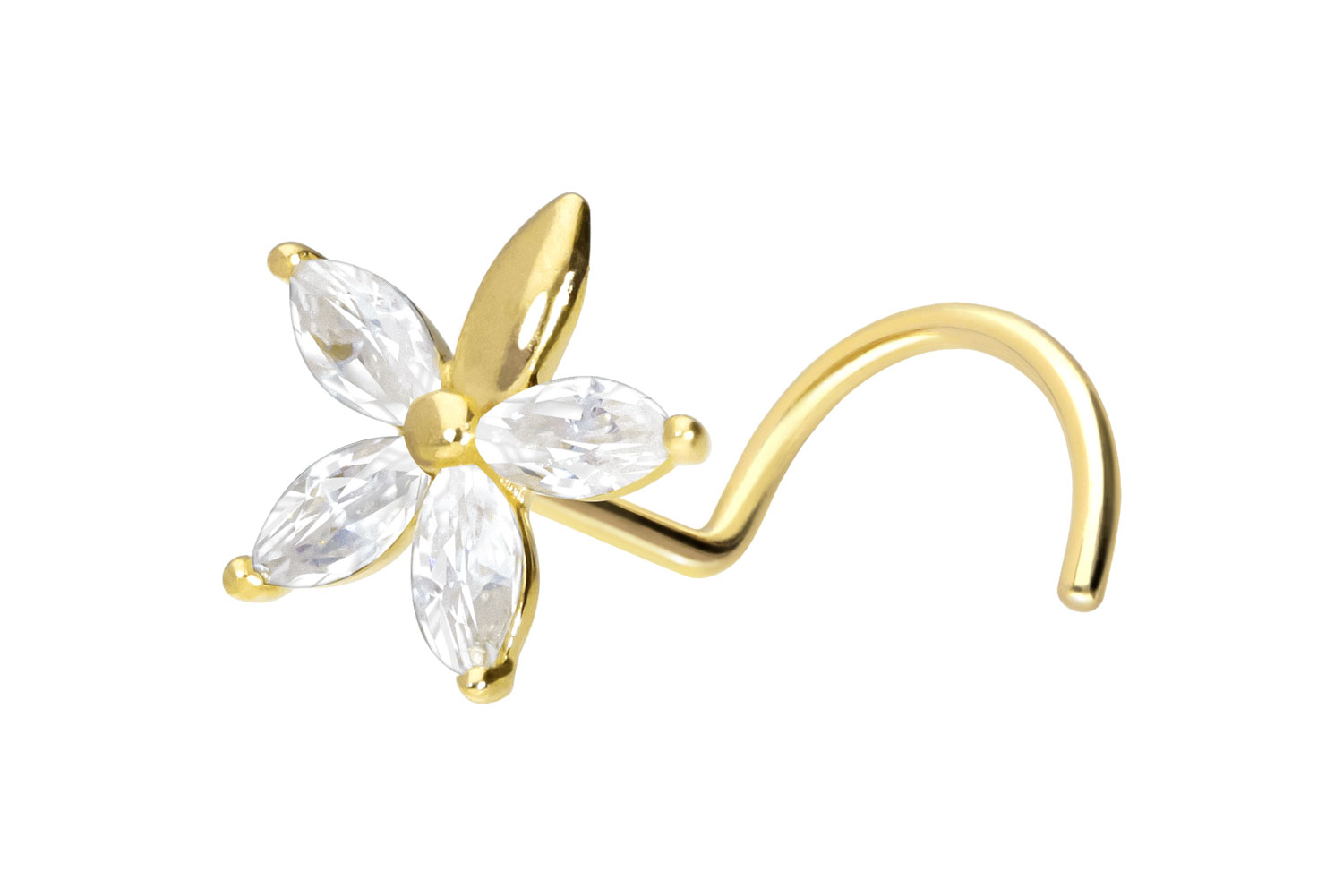 Design size (moissanite flower): 6.5 mm14/18 Carat Gold - Nose Stud Spiral Moissanite Flower