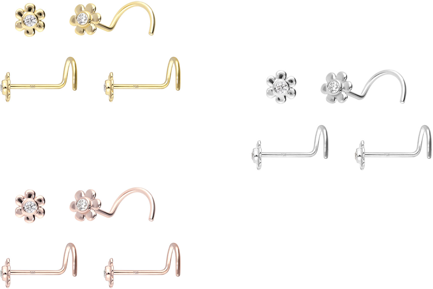 Design size (flower): 4 mm14/18 Carat Gold - Nose Stud Spiral Moissanite + Flower
