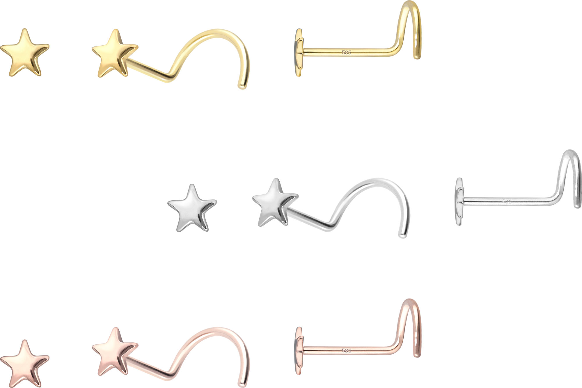 Design size (star): 3 mm14/18 Carat Gold - Nose Stud Spiral Star