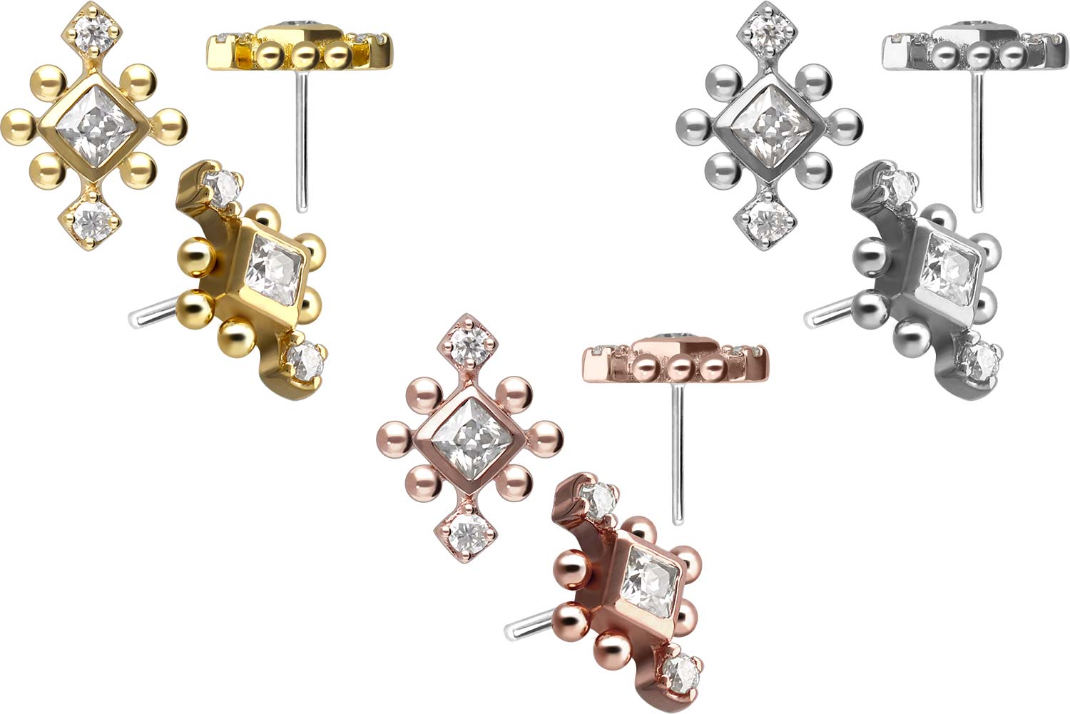 14 Carat Gold - Attachment with Titanium Push Pin 3 Moissanites + Balls