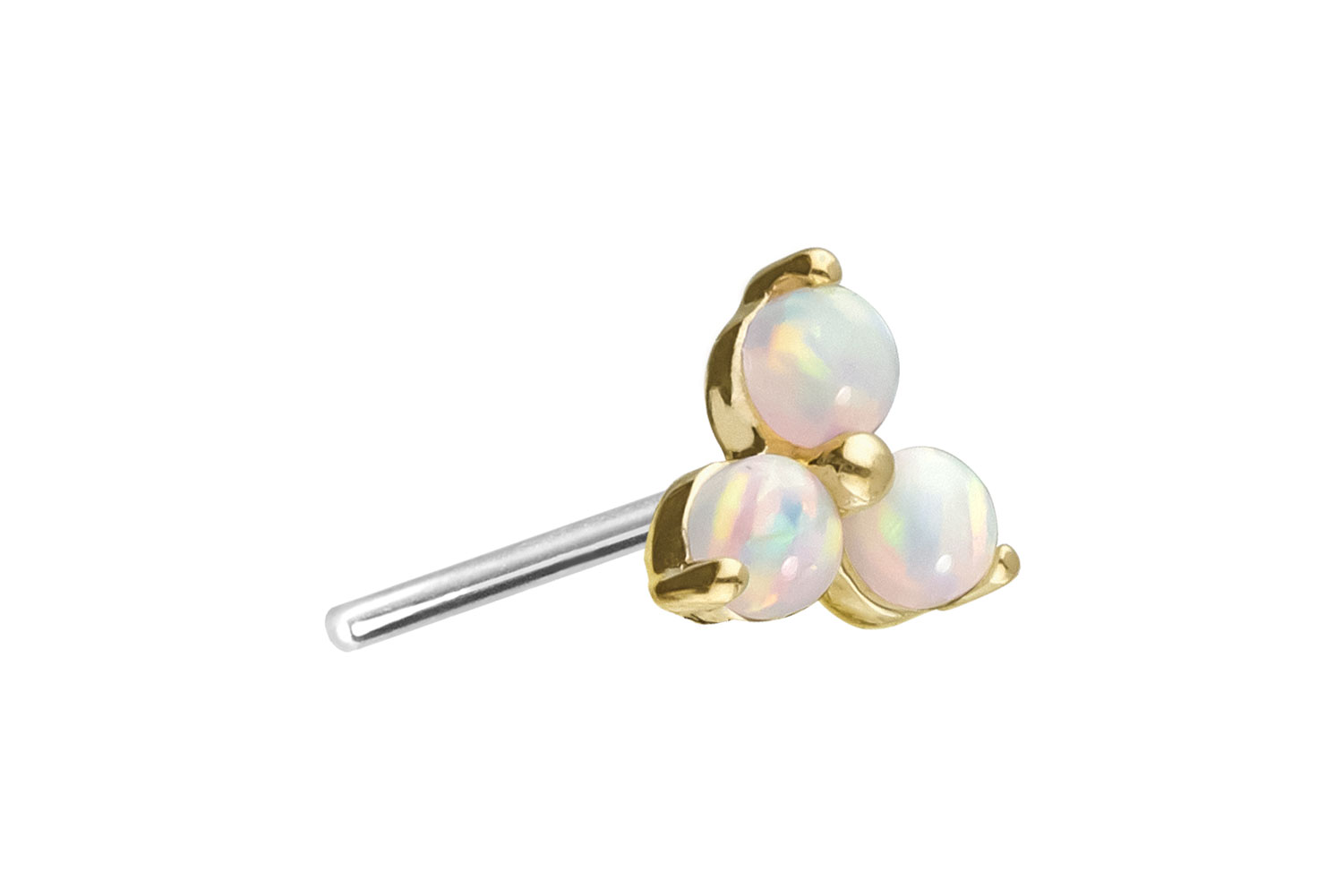 14 Carat Gold - Attachment with Titanium Push Pin Flower + 3 synthetic Opals