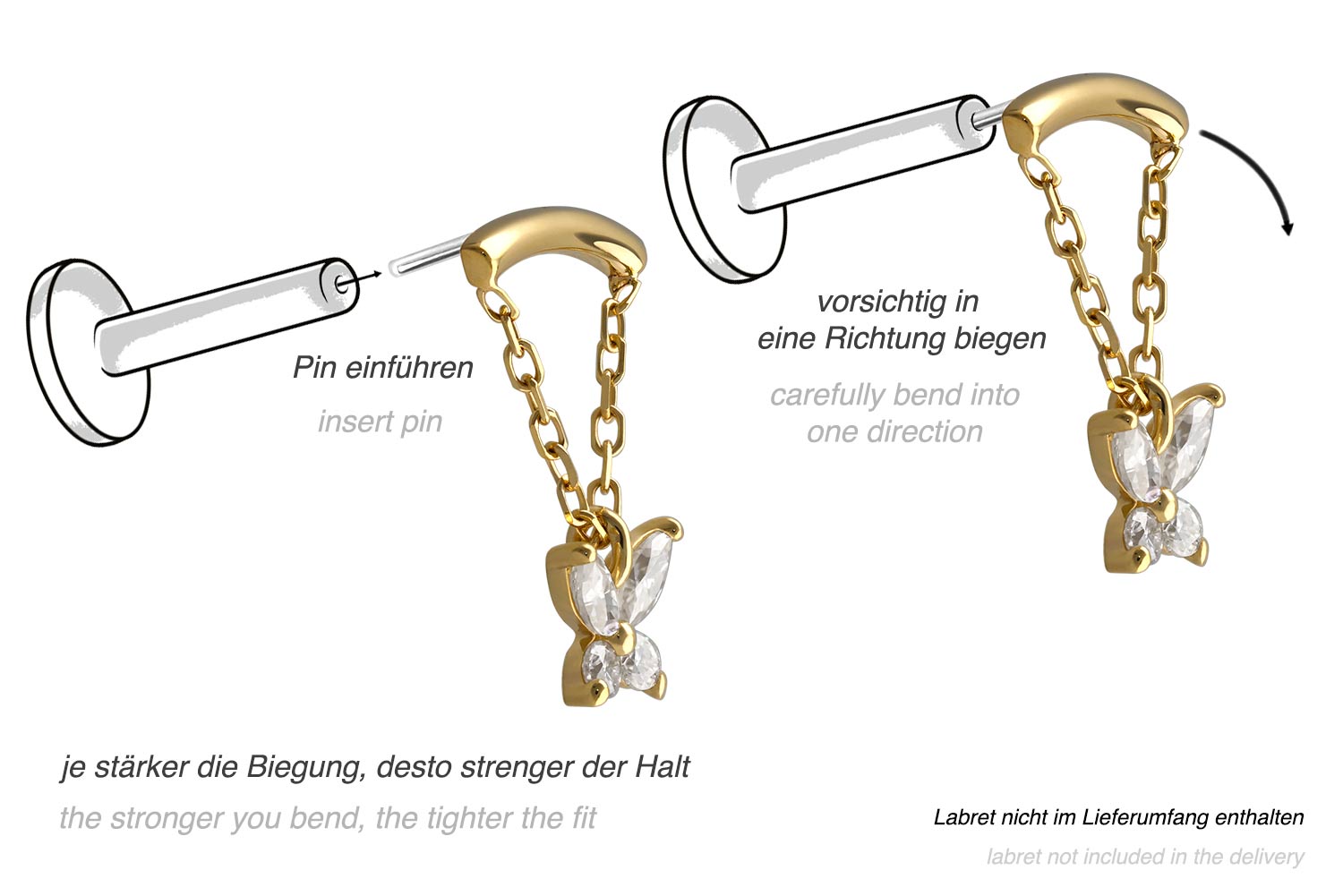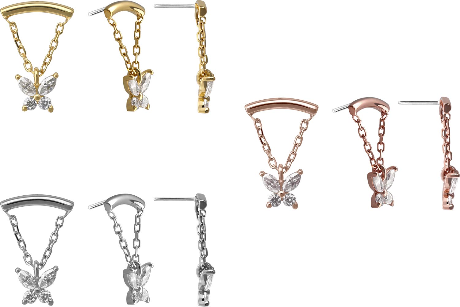 14 carat gold attachment with titanium push pin MOISSANITE BUTTERFLY + ARCH + CHAIN