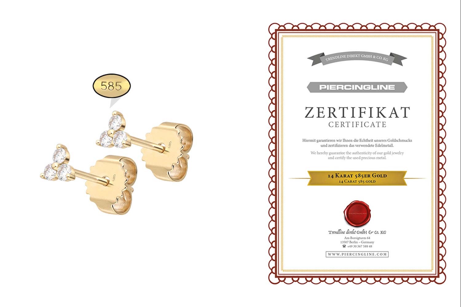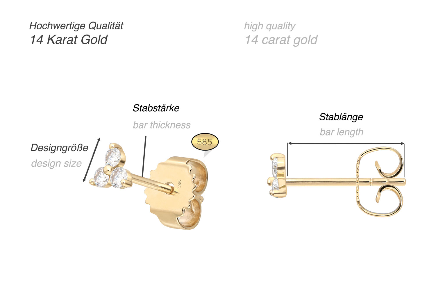 Except for the moissanites, this precious ear studs are made entirely of high quality 14 carat (585) yellow gold, which in addition to its excellent quality also knows how to impress with properties such as good skin compatibility and high durability. The moissanite gives the piece of jewellery its extraordinary, diamond-like shine. Each and every one of our gold items is handcrafted with great attention to detail, making it one of a kind. Both studs are adorned with a soarkling moissanite flower each and thus shine in full magnificence. They are supplied in pairs as depicted.