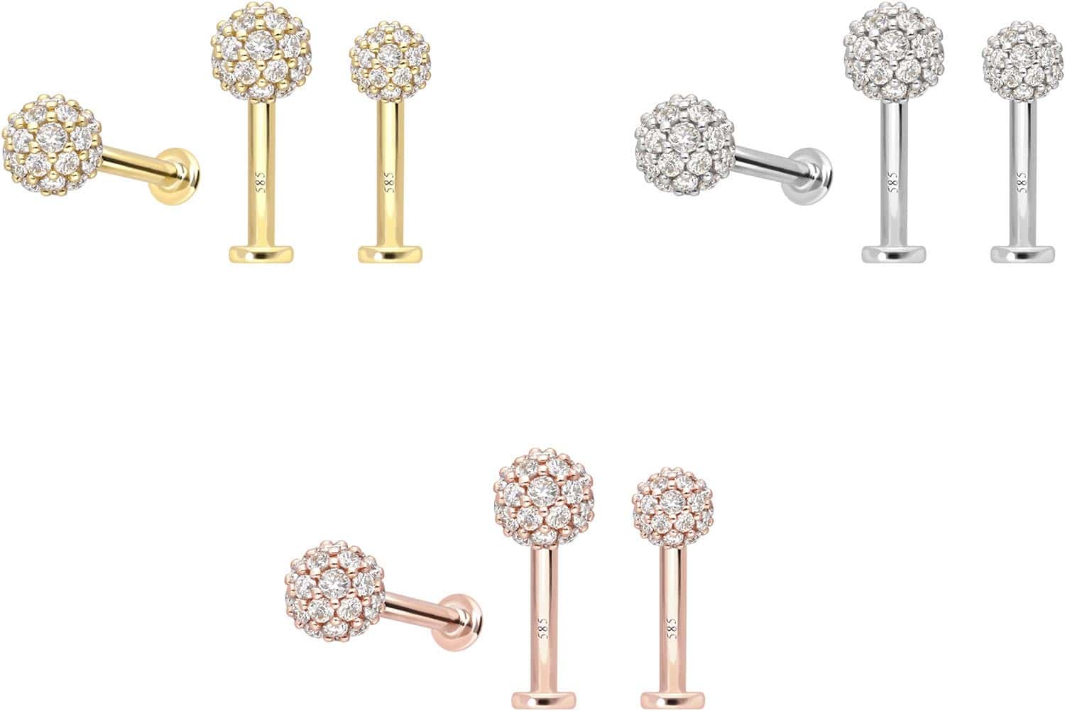 14 carat gold labret with internal thread MULTI MOISSANITE