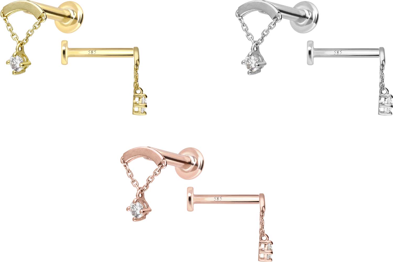 14 Carat Gold - Labret with Push Fit Moissanite + Arch + Chain
