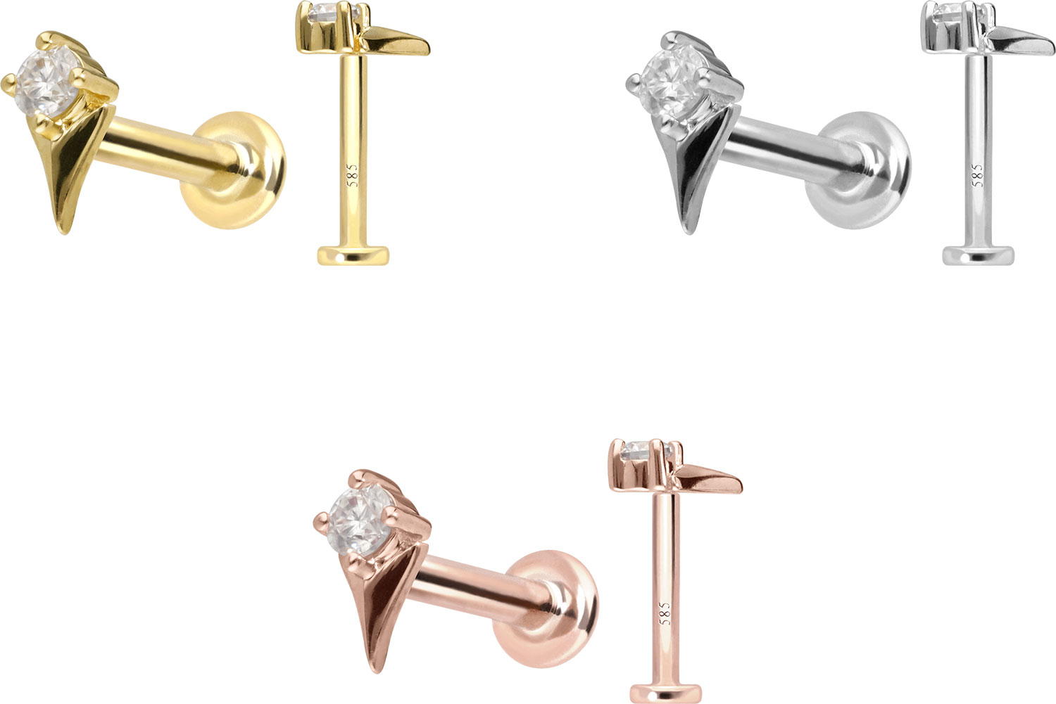 14 Carat Gold - Labret with Push Fit Moissanite+ Arrowhead