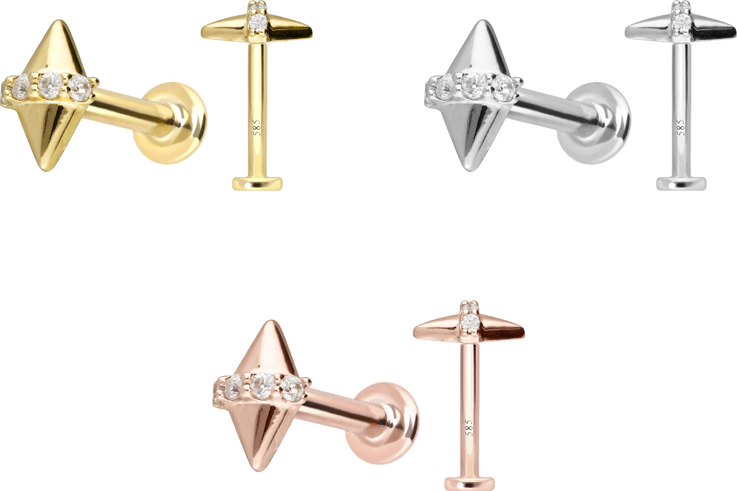 14 Carat Gold - Labret with Push Fit Moissanites + 2 Cones