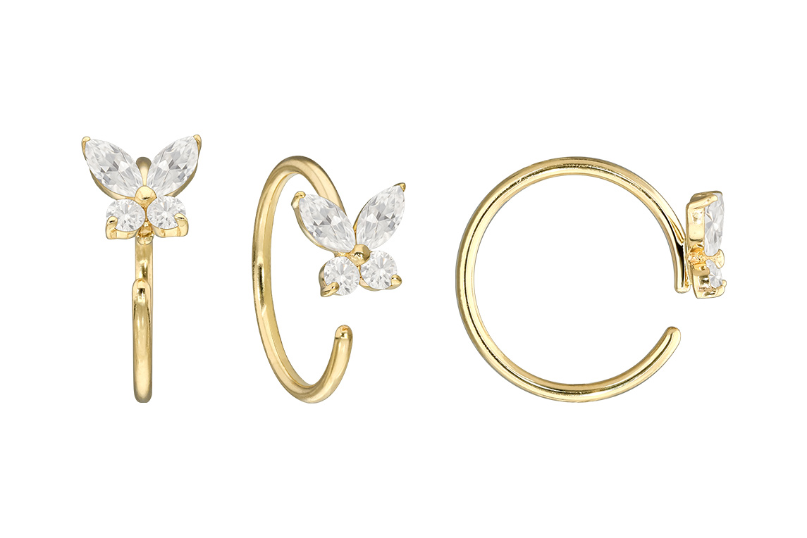 14 carat gold nose ring MOISSANITE BUTTERFLY - bendable