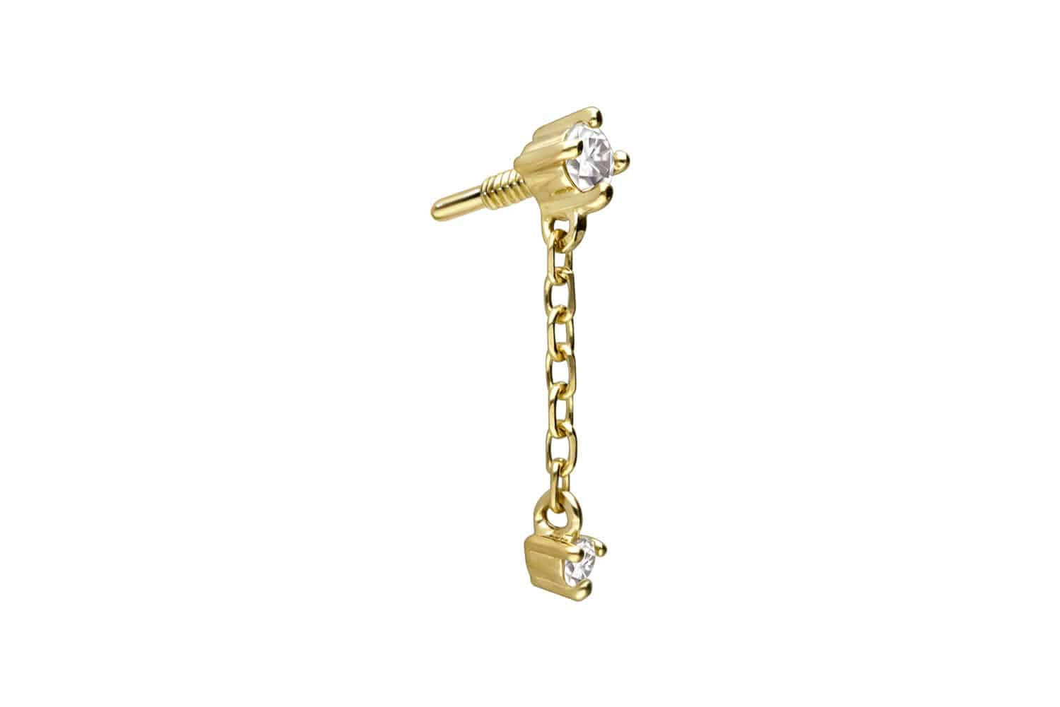 14 Carat Gold - Screw-In Attachment with external Thread 2 Moissanites + Chain