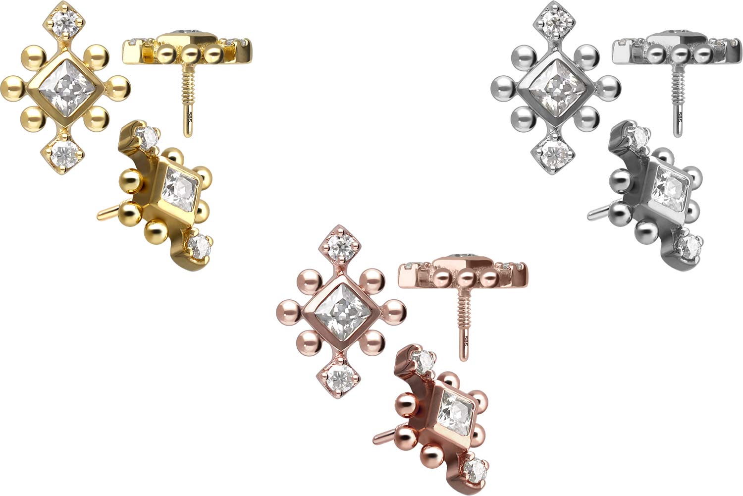 14 Carat Gold - Screw-In Attachment with external Thread 3 Moissanites + Balls