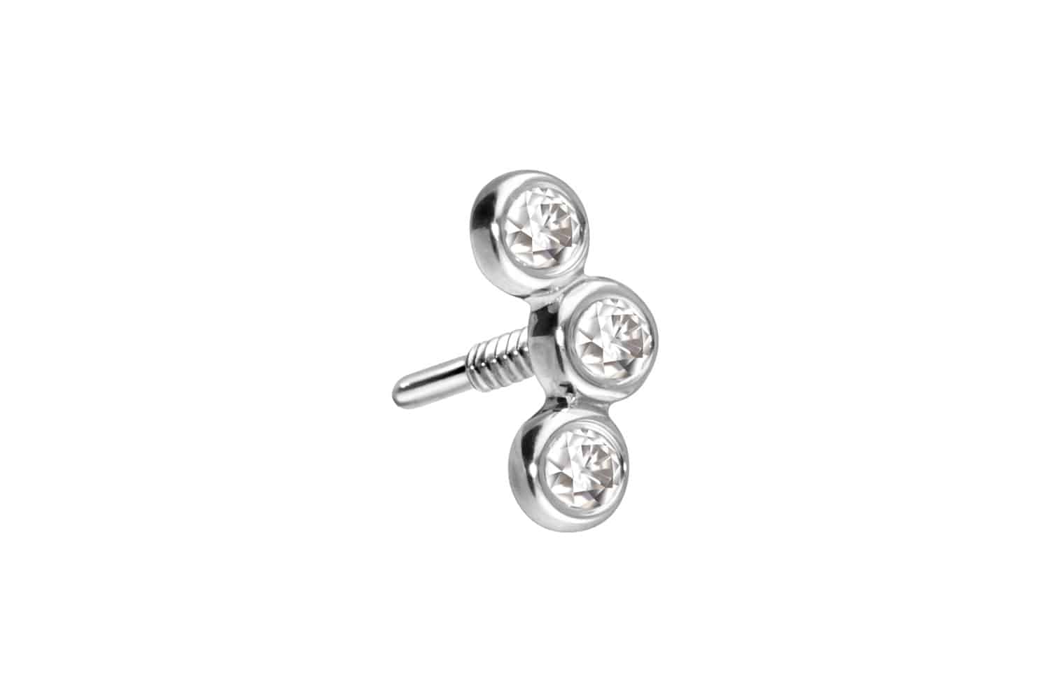 Except for the moissanites, this timelessly beautiful screw-in attachment in form of an arch is made entirely of high quality 14 carat (585) gold, which in addition to its excellent quality also knows how to impress with properties such as good skin compatibility and high durability. Color-wise, it is available in yellow gold, rose gold and rhodium-plated white gold. The moissanite gives the piece of jewellery its extraordinary, diamond-like shine. Each and every one of our gold items is handcrafted with great attention to detail, making it one of a kind. Since the 0.8 mm external thread of the attachment is compatible with all our 14 carat (585) gold products with this kind of internal thread, there are various combination possibilities.