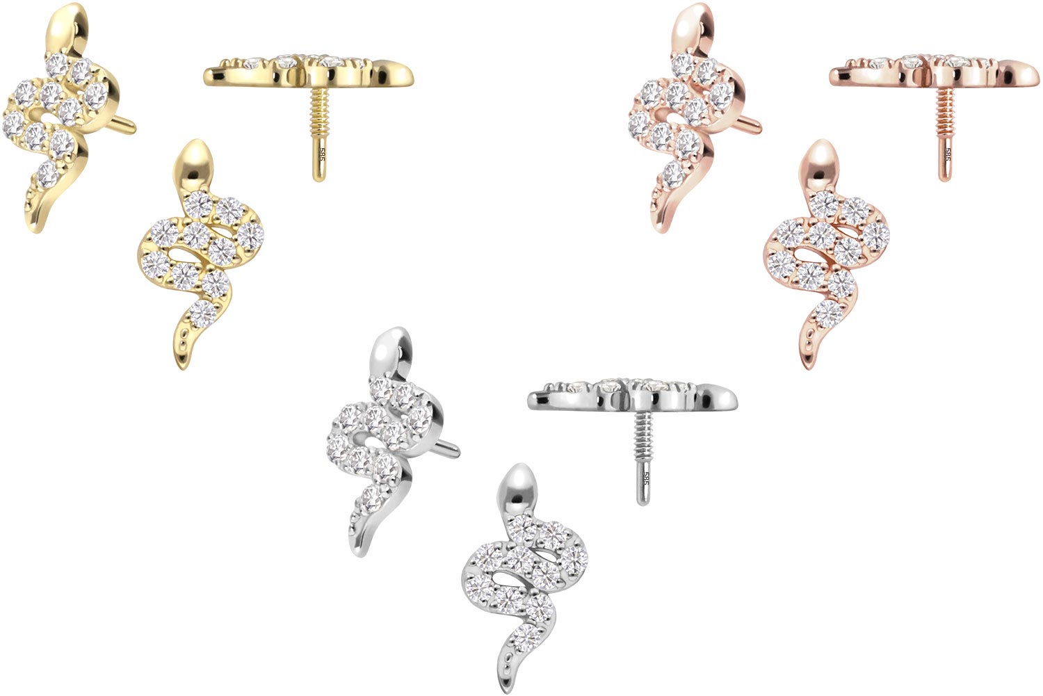 14 carat gold screw-in attachment with external thread MOISSANITE SNAKE