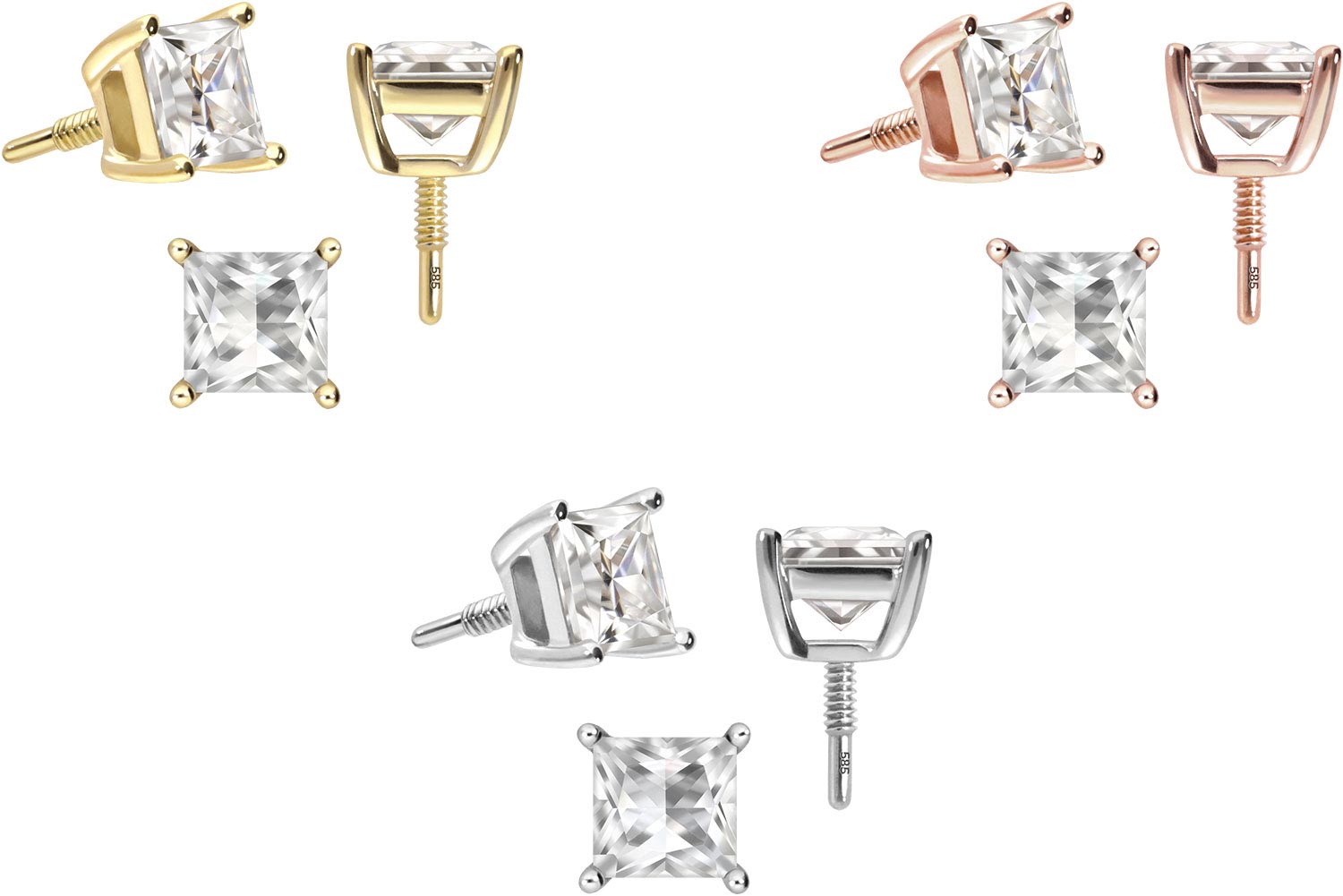 14 Carat Gold - Screw-In Attachment with external Thread Moissanite Square