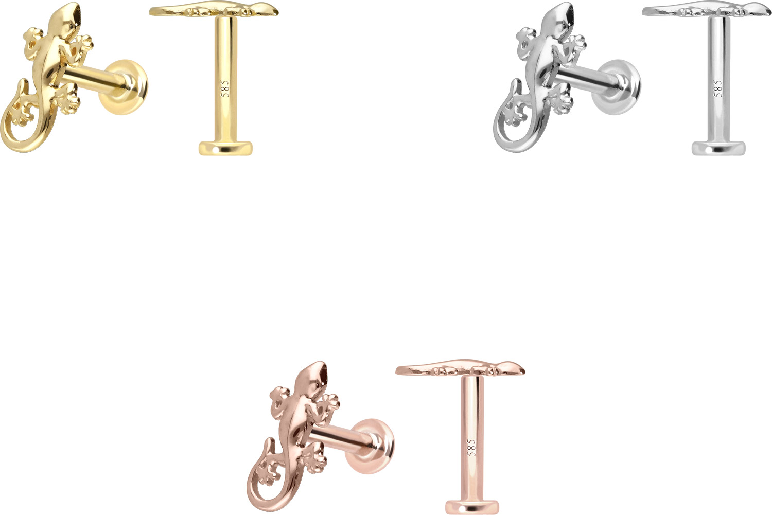 14 Carat Gold - Labret with internal Thread Gecko