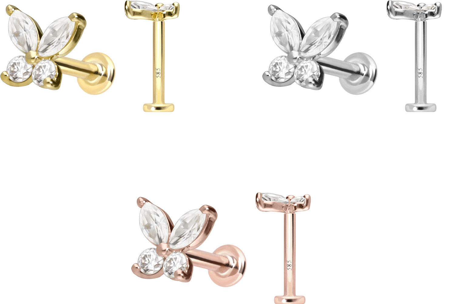 14 Carat Gold - Labret with internal Thread Moissanite Butterfly