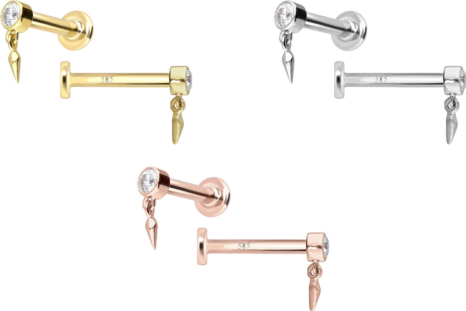 14 Carat Gold - Labret with internal Thread Moissanite + Cone