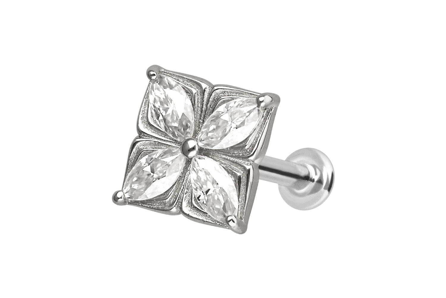 14 Carat Gold - Labret with internal Thread Moissanite Flower