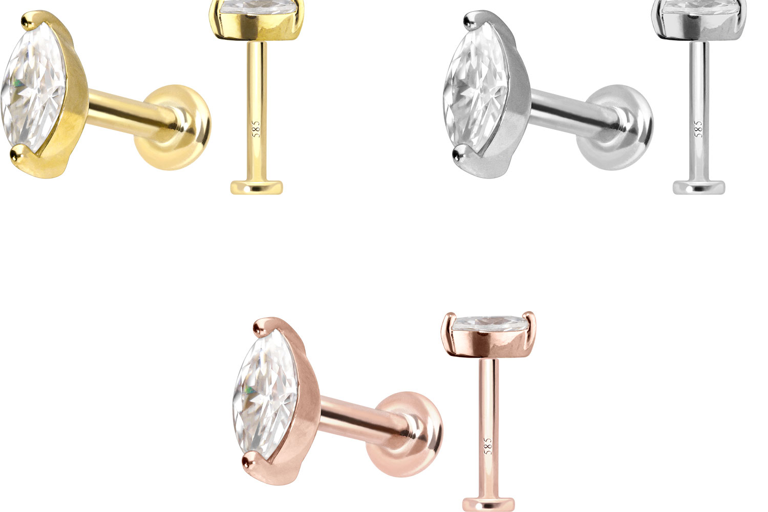 14 Carat Gold - Labret with internal Thread Moissanite Oval