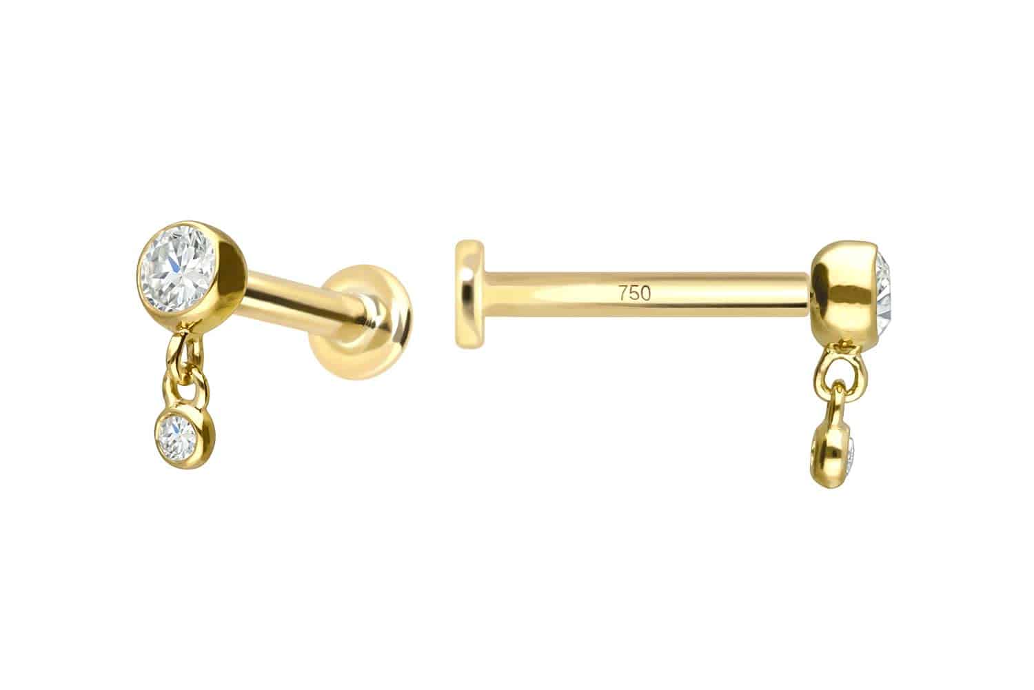 18 Carat Gold - Labret with internal Thread 2 Diamonds