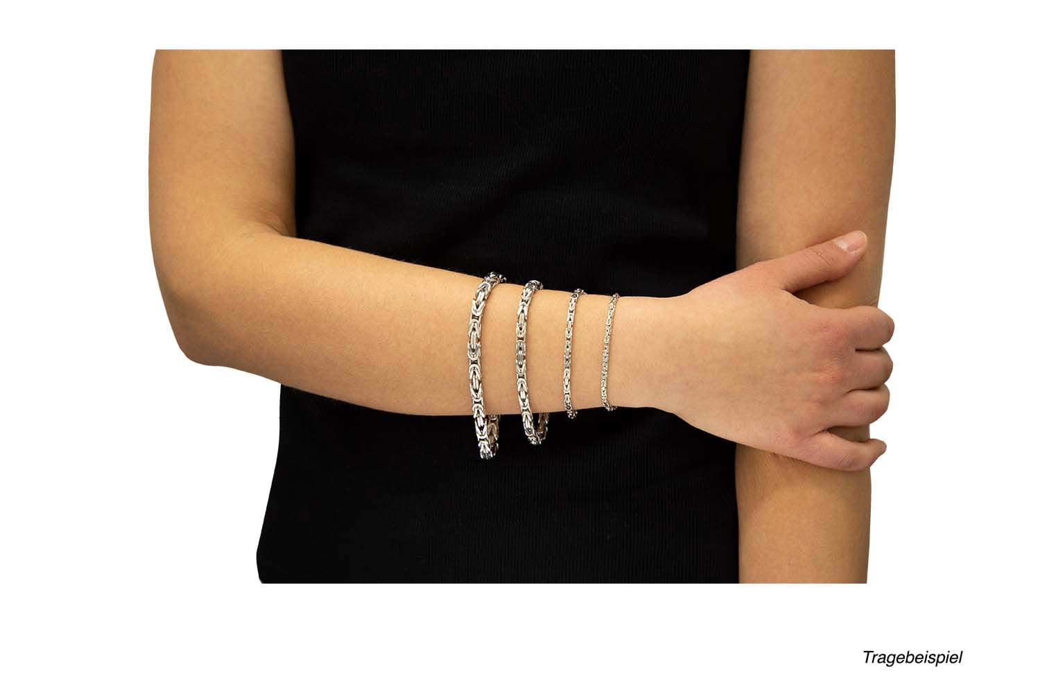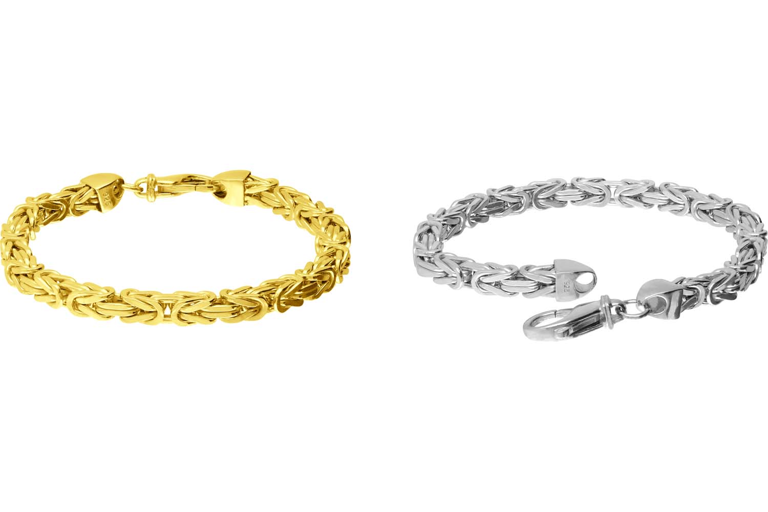 Both the silver-colored and gold-colored versions of this classic king bracelet are made of high quality 925 silver. Its surface always impresses with a highly polished finish and is also durable and scratch-resistant. To preserve the shine and bright shimmering color of the silver bracelet, it is additionally rhodium-plated. Different from the gold-colored one, which acquires its noble hue with a coating of high quality 24 carat gold and yet is equally protected from external influences. Thanks to the useful lobster clasp, the jewelry can be easily opened and securely closed. It is available in the thicknesses and lengths listed below.