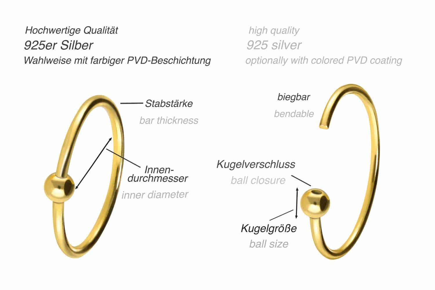 This classic nose ring with timelessly beautiful 2 mm ball is made of high quality 925 silver, which