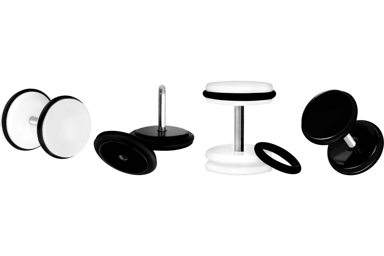 with flat texture. The size of the discs, only one of which can be unscrewed from each, is 8 mm. They are furthermore adorned with rubber rings, with the help of which they imitate the look of the real plugs.