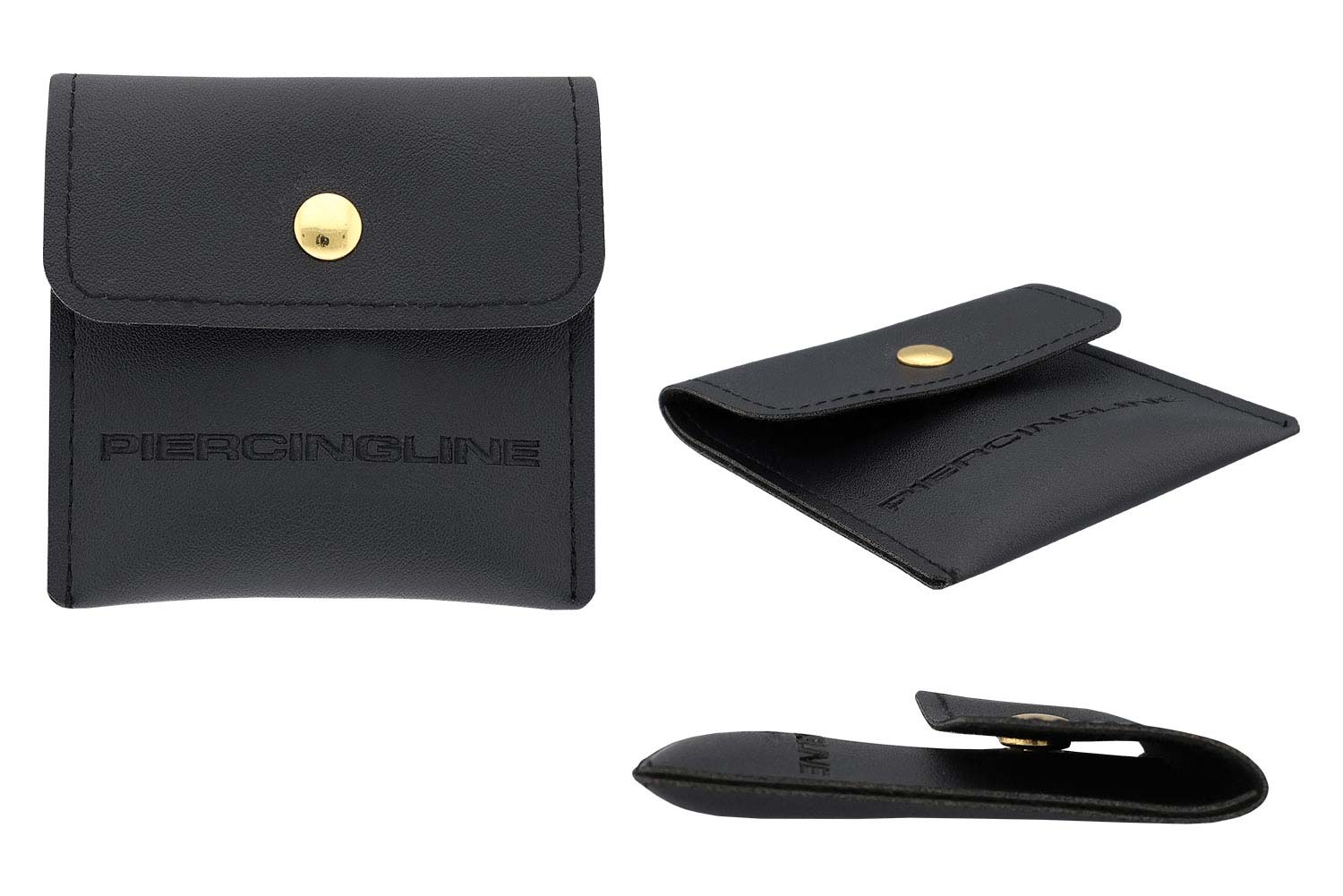 jewelry and piercings - this equally elegant as high quality bag can be ideally used for both purposes. Consisting of high quality imitation leather, which looks particularly appealing due to its elegant finish with the Piercingline imprint, the jewelry bag allows optimal storage of the jewelry that can be placed inside. In addition, the push button ensures that the bag can be easily opened and securely closed.