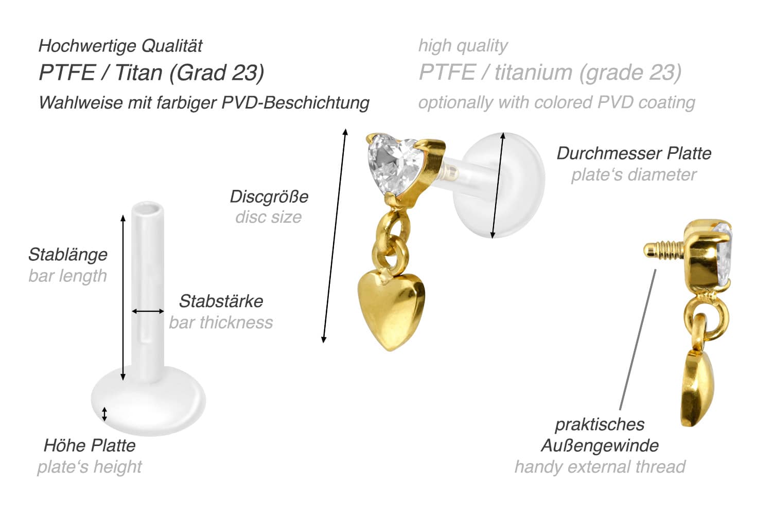 PTFE labret with internal thread + titanium attachment 2 HEARTS