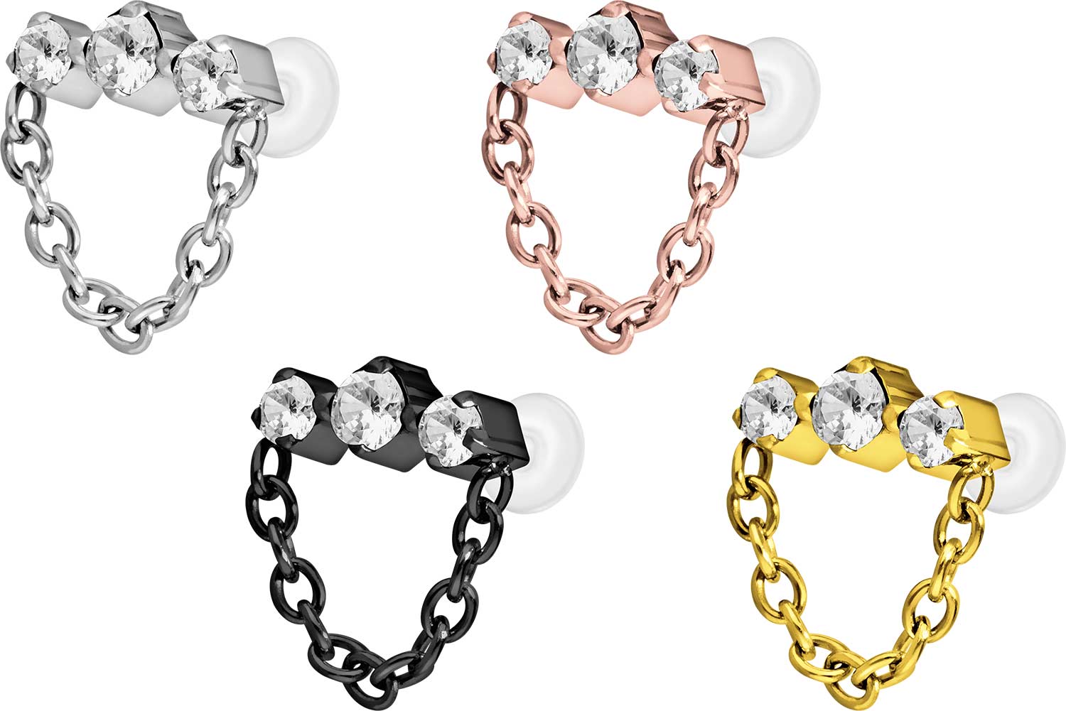 PTFE - Labret with internal Thread + Titanium Attachment 3 setted Crystals + Chain