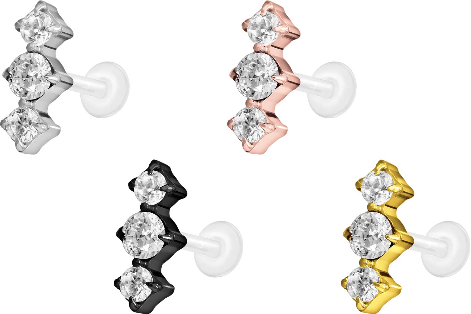 PTFE - Labret with internal Thread + Titanium Attachment 3 setted Crystals
