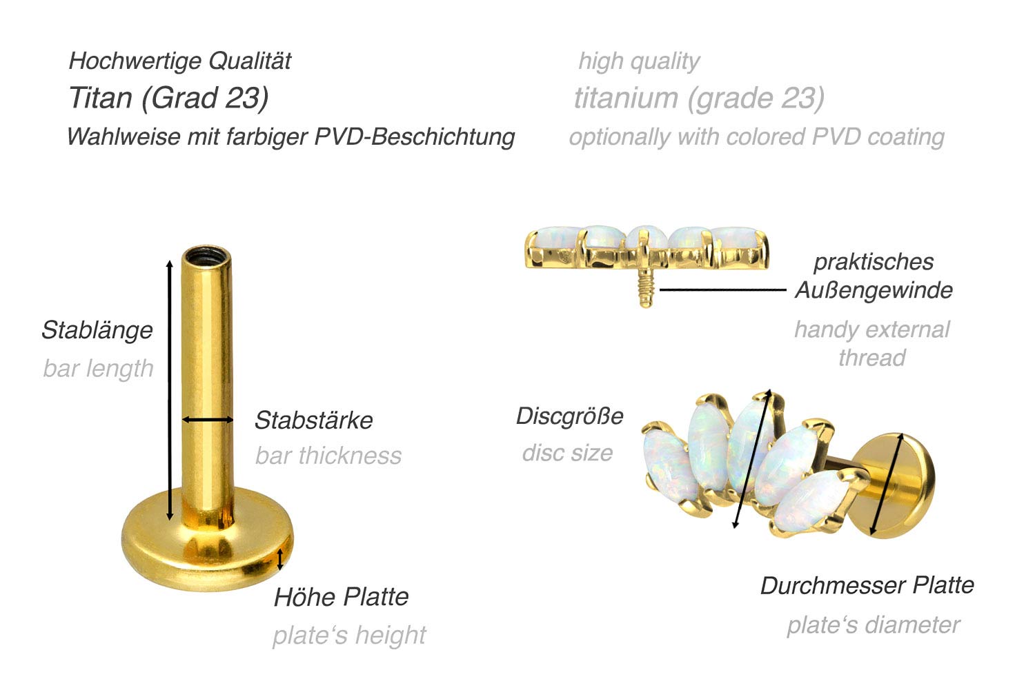 PTFE - Labret with internal Thread + Titanium Attachment Arch + synthetic Opals