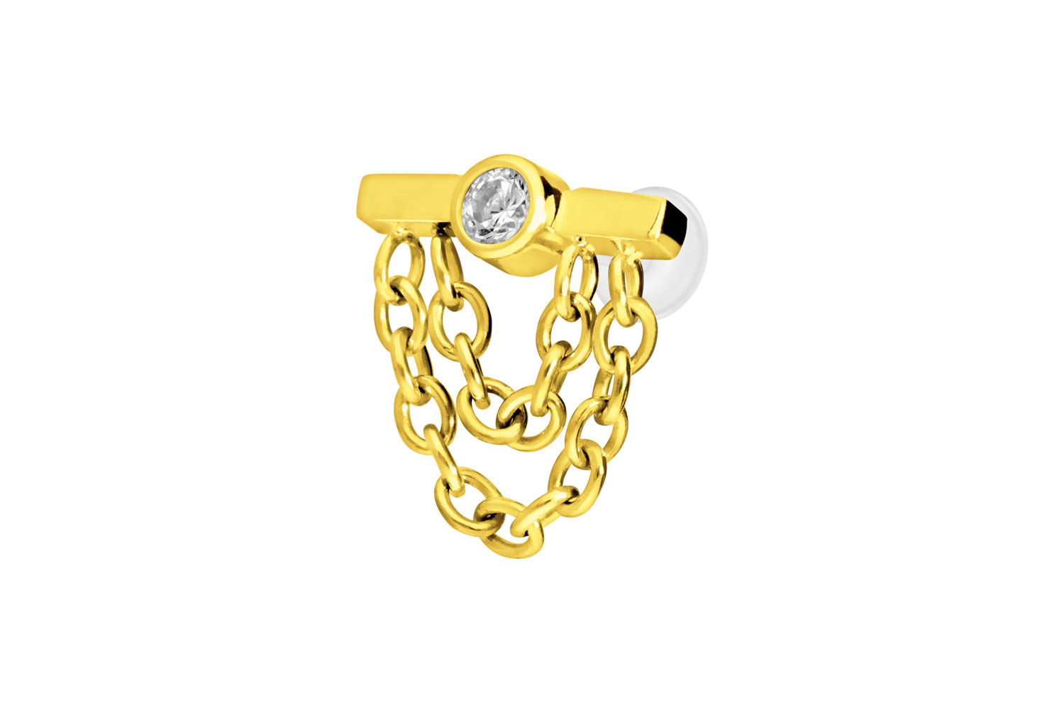 PTFE - Labret with internal Thread + Titanium Attachment Bar + Crystal + 2 Chains