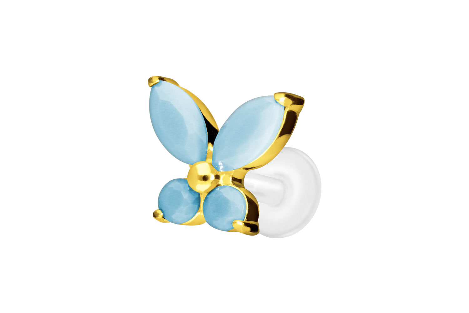 PTFE - Labret with internal Thread + Titanium Attachment Butterfly + synthetic Turquoises