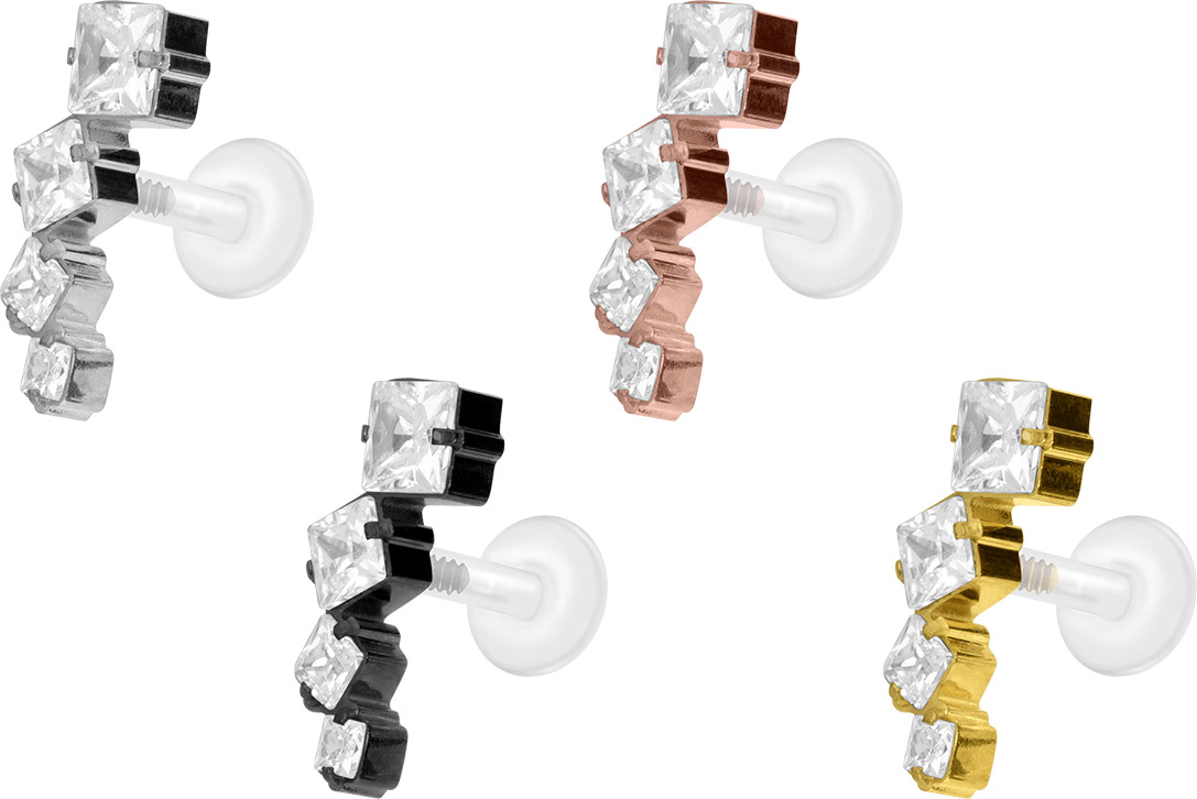 The labret has a bar thickness of either 1.2 or 1.6 mm and is available with