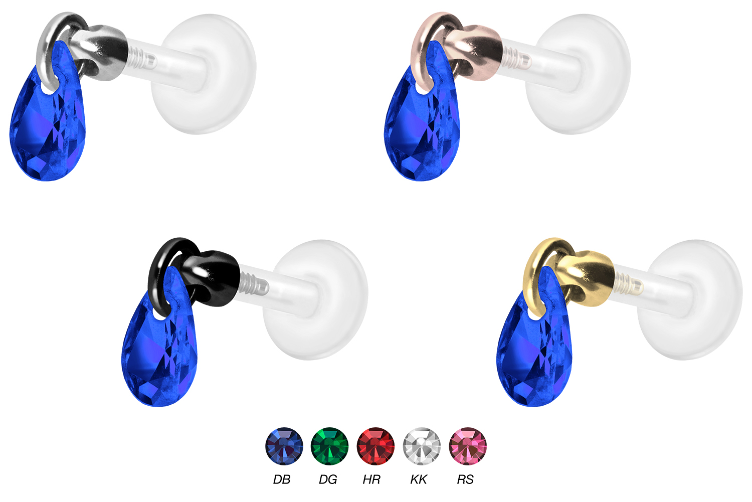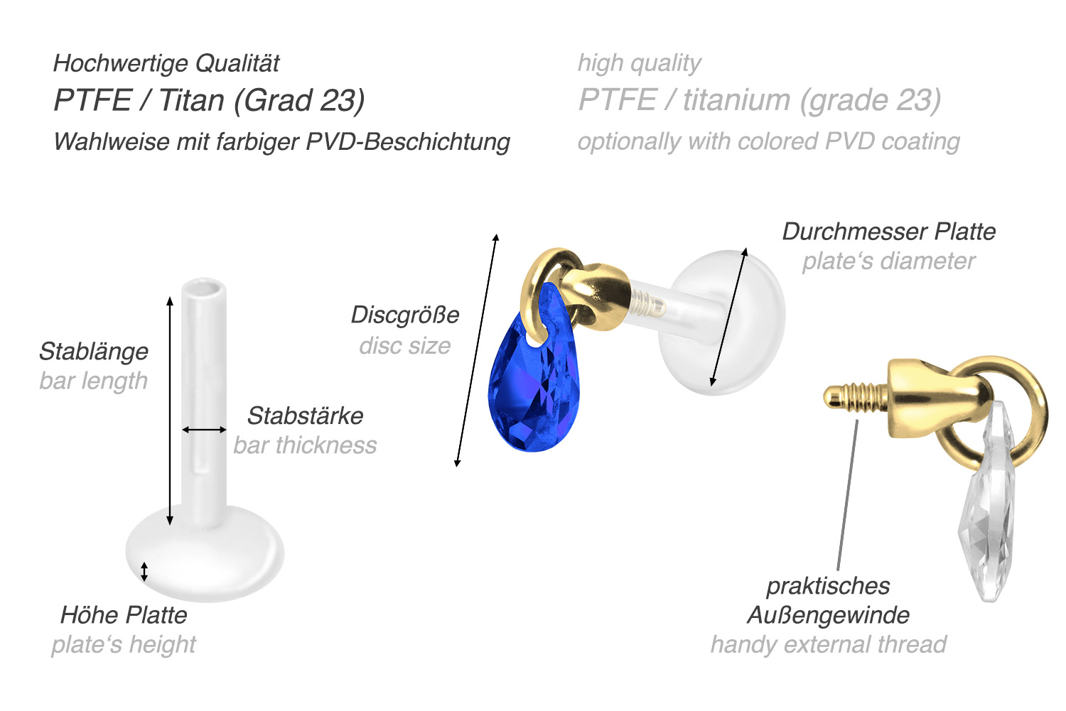 PTFE labret with internal thread + titanium attachment CRYSTAL DROP