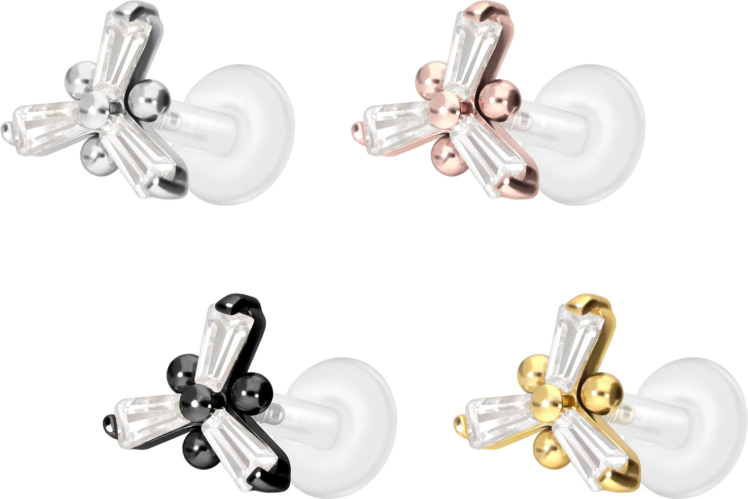 PTFE - Labret with internal Thread + Titanium Attachment Crystal Flower