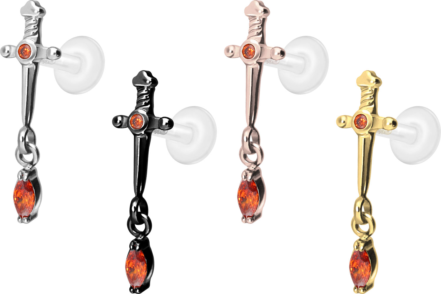 PTFE - Labret with internal Thread + Titanium Attachment Dagger +Crystal Drop