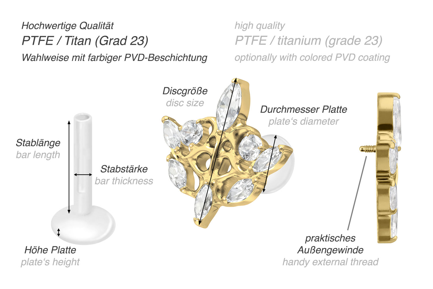 Plate's diameter (PTFE labret, 1.2 mm bar thickness): 4 mm