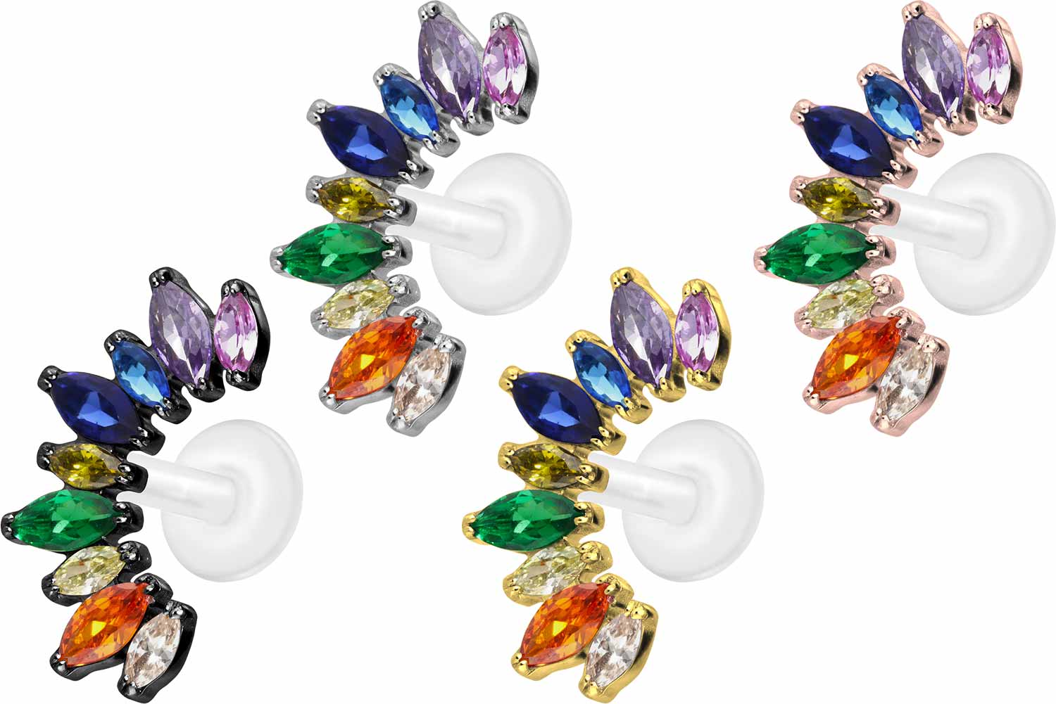 PTFE labret with internal thread + titanium attachment MULTICOLORED CRYSTAL ARCH