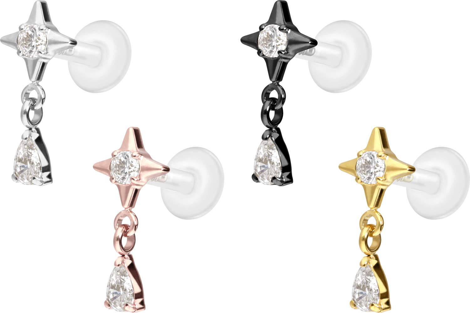 PTFE - Labret with internal Thread + Titanium Attachment Star + Crystal Drop