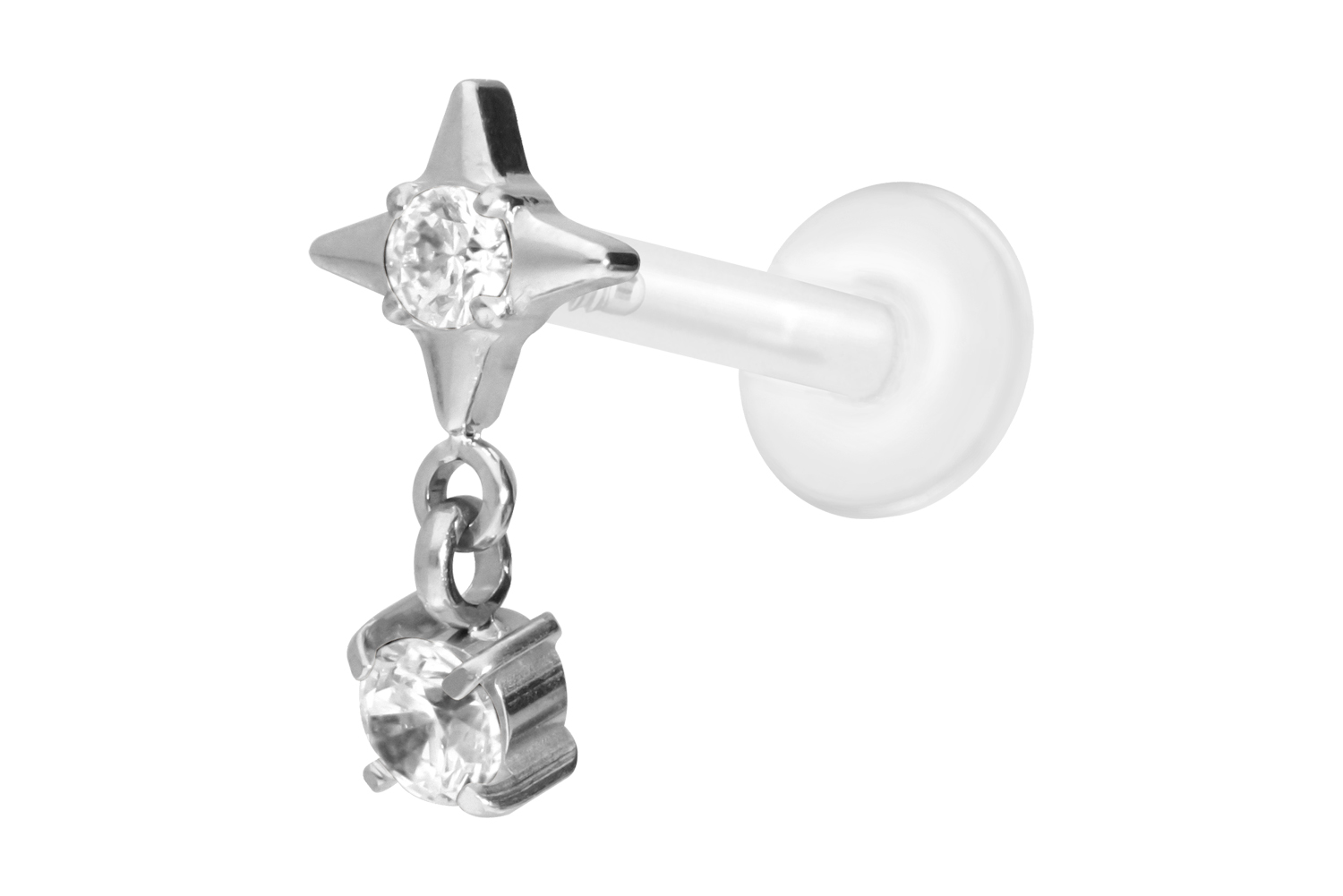 PTFE - Labret with internal Thread + Titanium Attachment Star + Crystal