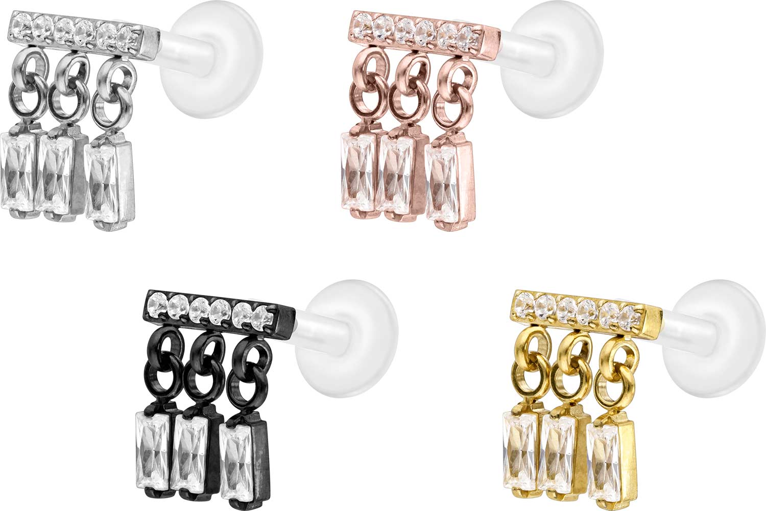 The labret has a bar thickness of either 1.2 or 1.6 mm and is available with