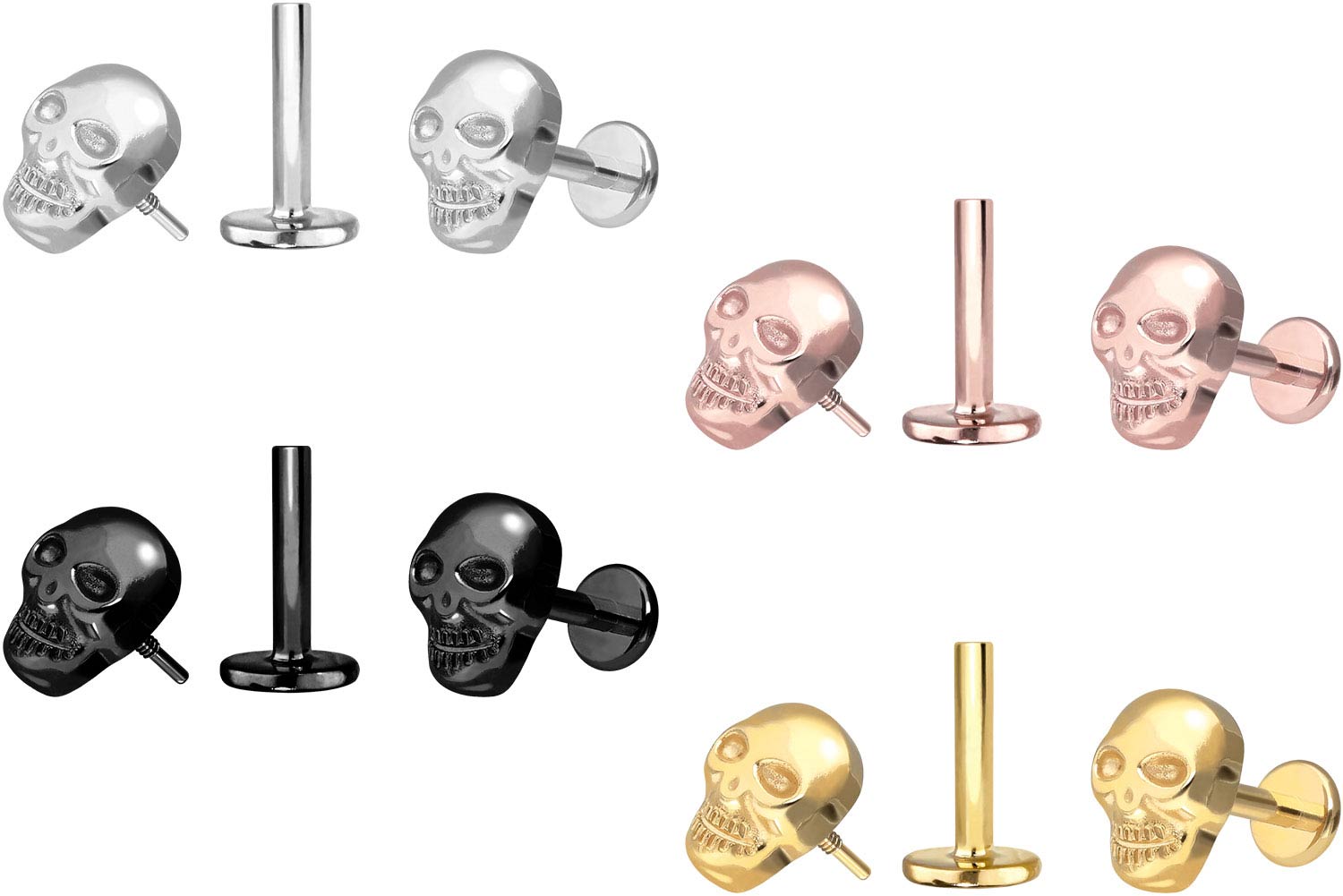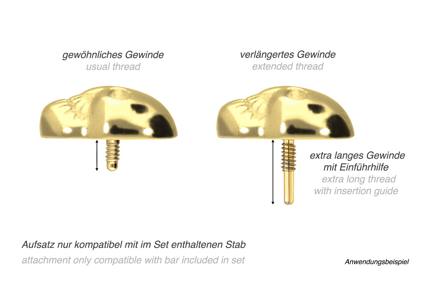is supplied with a timelessly beautiful screw-in attachment with external thread in form of a skull, has a bar thickness of 1.2