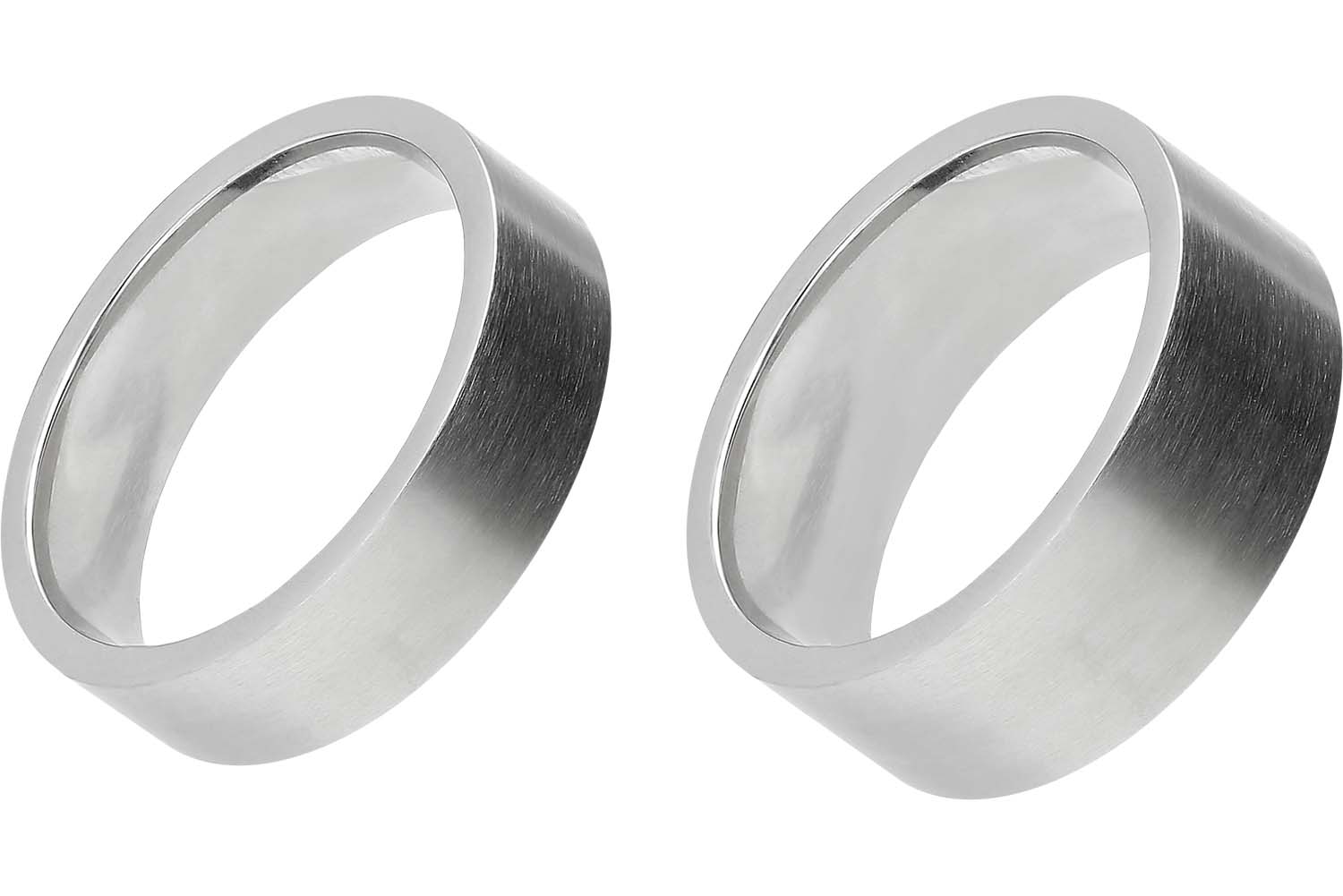 A discreet ring with a slim design, made of high quality and solid stainless steel. It has, among other positive features, useful material properties such as sturdiness and high scratch and corrosion resistance. In addition, the ring looks particularly appealing due to its matt brushed surface and can also be ideally combined with other jewelry from our versatile range. Its available ring sizes are listed below.
