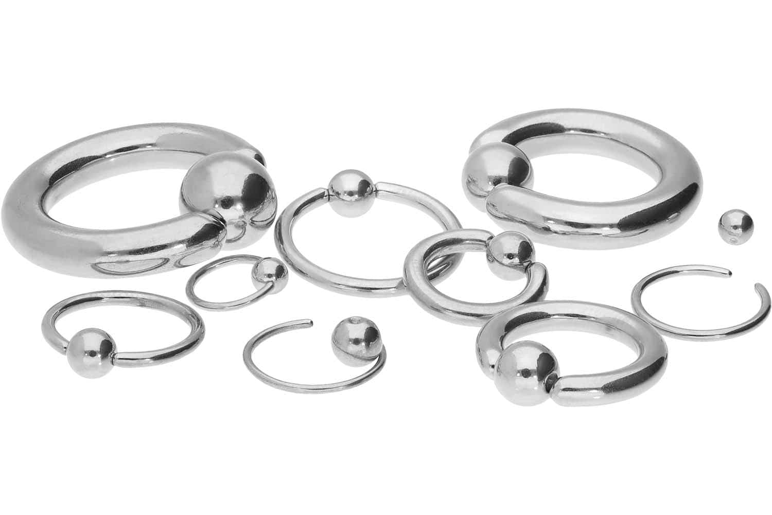 This classic ball closure ring is made of high quality surgical steel 316L, which has a scratch-resistant PVD coating, depending on the color desired. Besides high quality, the material properties of surgical steel include high durability and flat texture. To insert the ring, it must first be slightly bent open so that the ball can be removed. After it is successfully inserted into the piercing puncture, the ball must be clamped between the two ends of the ring again. The piece of jewelry is available in the bar thicknesses and inner diameters listed below.