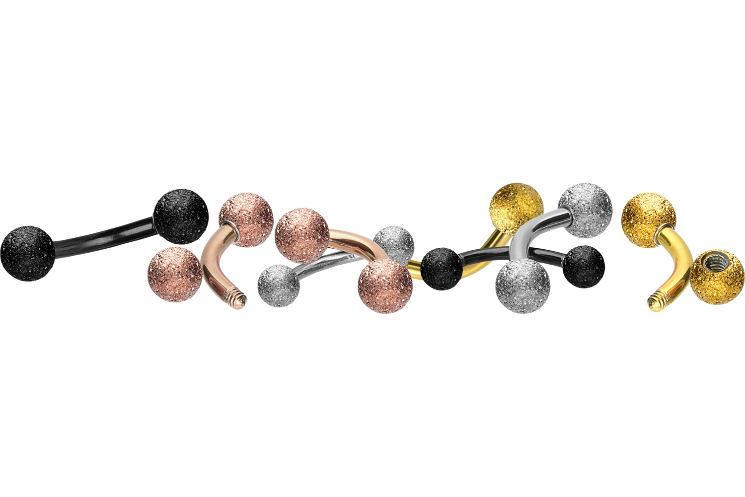 the highly polished surface. At each end of the bar is a diamaond look ball that can be unscrewed. The piece of jewelry is available with a bar thickness of either 1.2 mm or 1.6 mm in the bar lengths listed below.