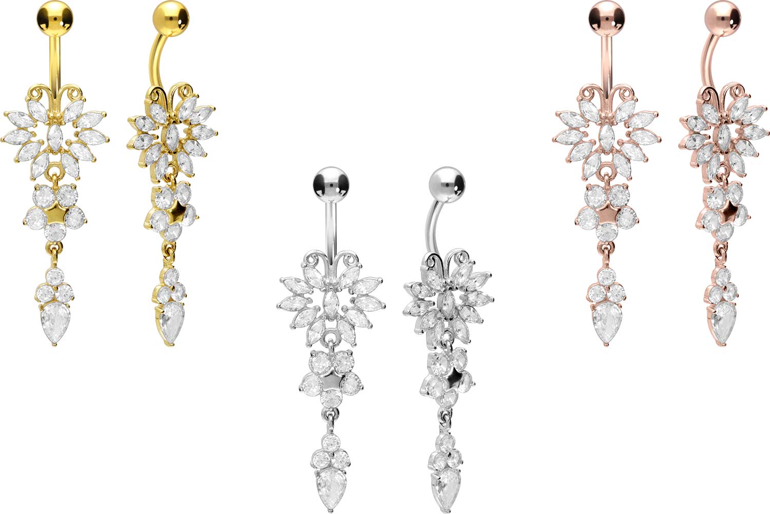 Surgical Steel 316L - Bellybutton Piercing Butterfly + Flower