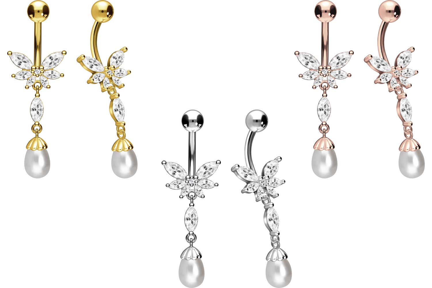 Surgical Steel 316L - Bellybutton Piercing Butterfly + synthetic Pearl