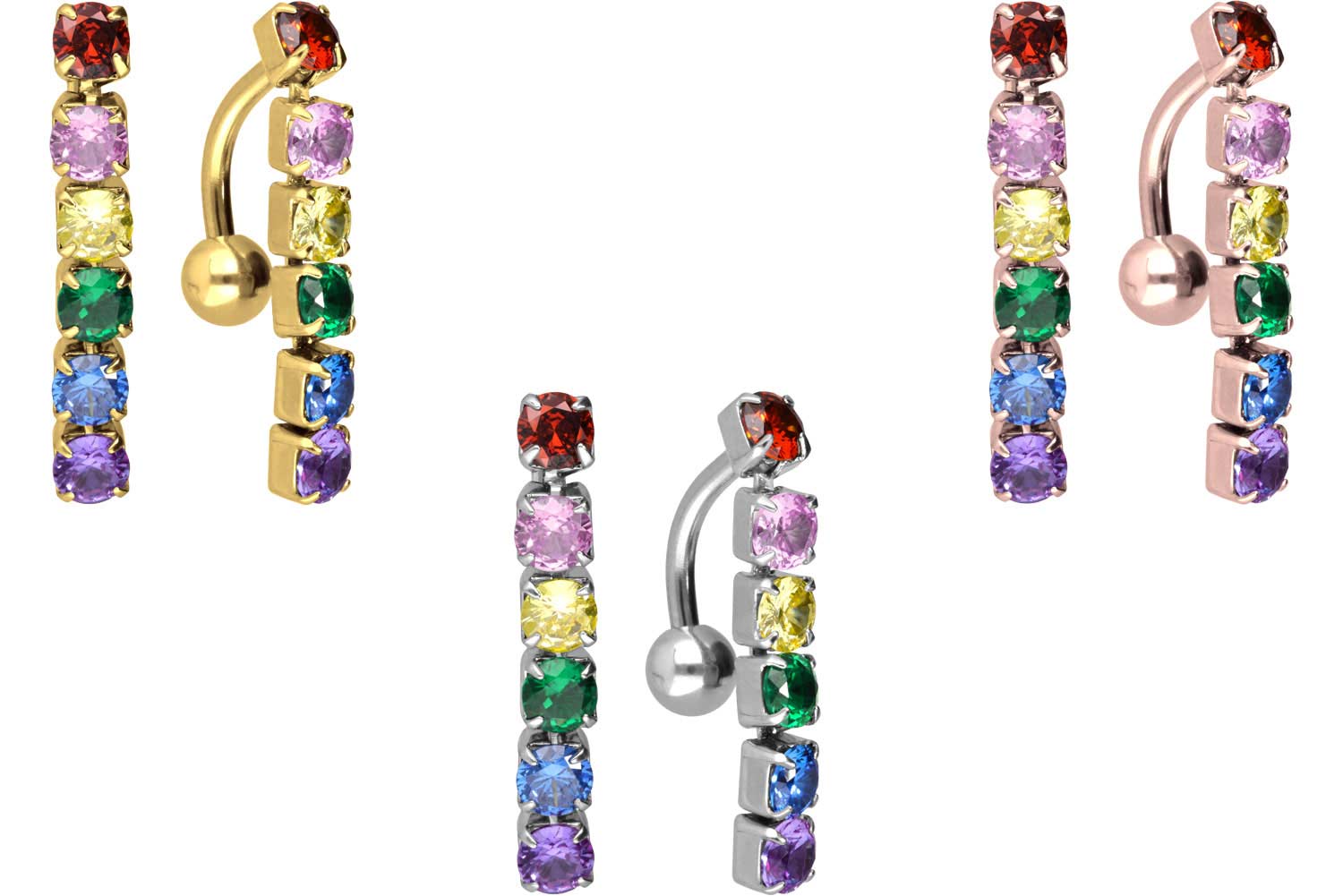 Surgical Steel 316L - Bellybutton Piercing multicolored Crystal Chain